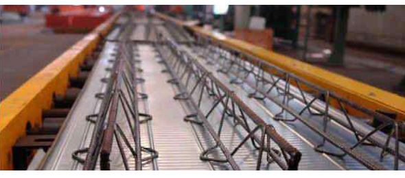 筋桁架樓板是將樓板中的鋼筋在工廠加工成鋼筋桁架,并將鋼筋桁架與鍍鋅壓型鋼板焊成一體的組合模板。